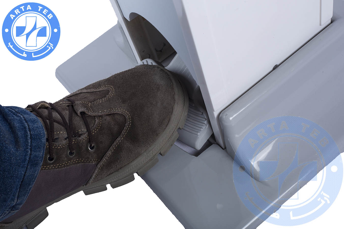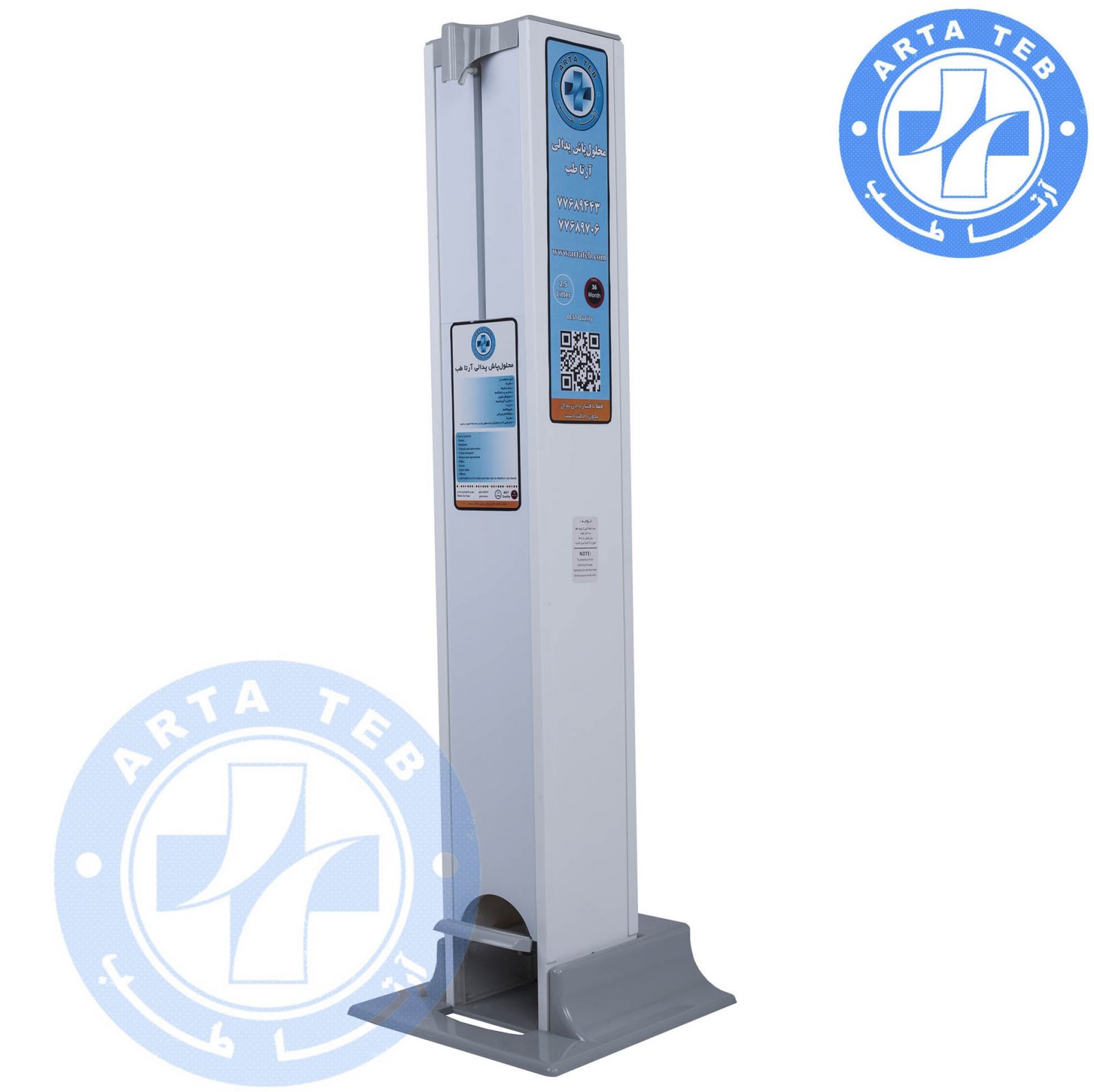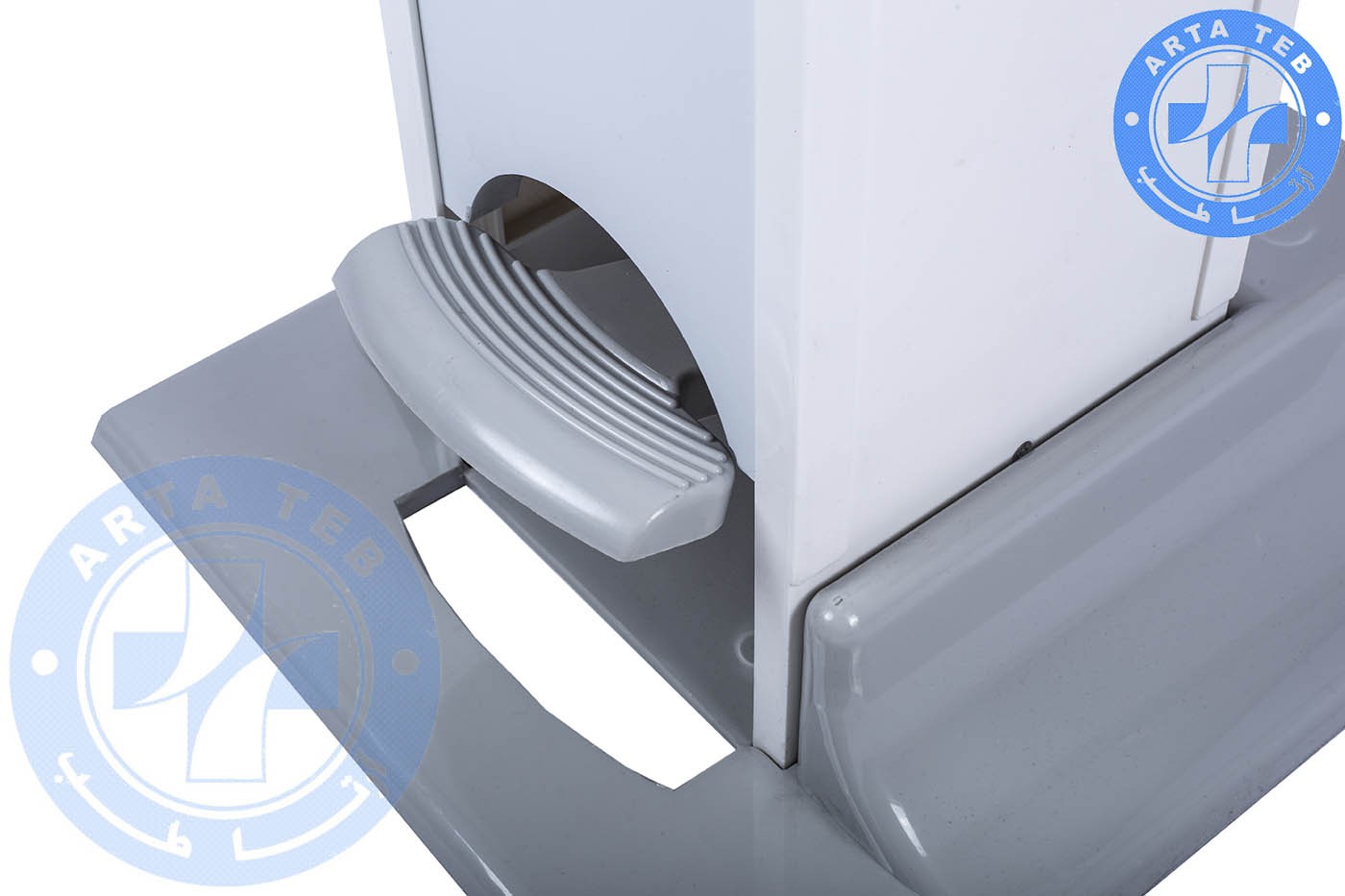 پایه پدالی دستگاه از کیفیت و دقت بالا برخوردار است که به محض قرار دادن پا بر روی آن اقدام به پاشیدن محلول ضد عفونی کننده روی دست میکند.