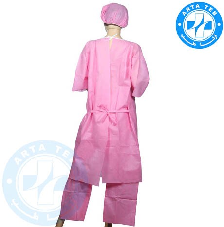 ست لباس بیمار (گان،کلاه،شلوار) زنانه | صورتی 38 گرم
